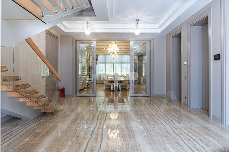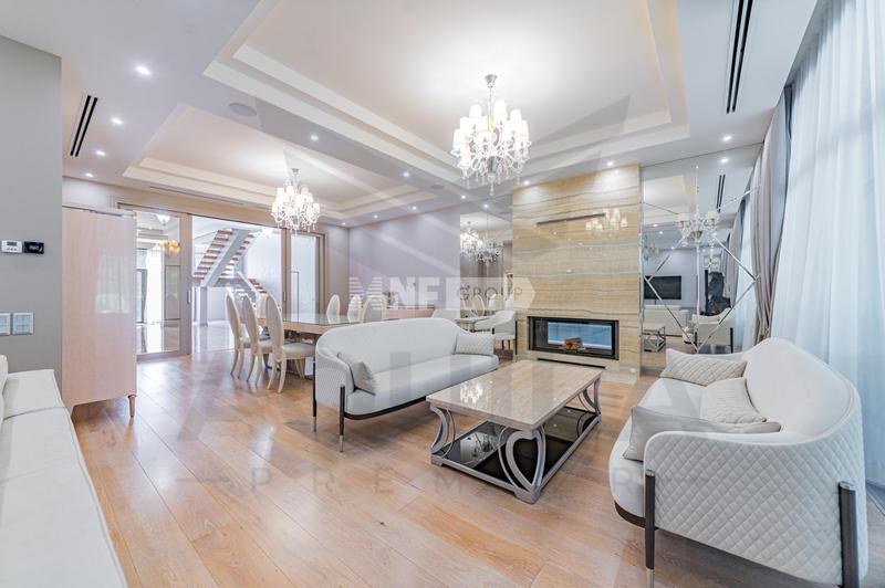 В холле вас встретит роскошная парадная лестница с балясинами из хрусталя, выполненными эксклюзивно для этого дома. Затем мы увидим просторную гостиную со вторым светом и зоной камина, профессиональную кухню с высококлассным оборудованием премиум-класса.