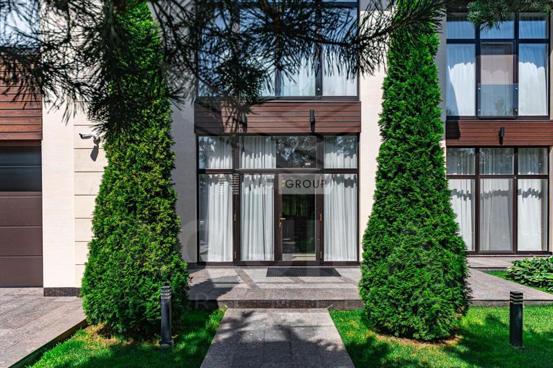Большой участок площадью 41 сотка утопает в зелени, создавая приватную атмосферу уединения и покоя. Придомовая территория с футбольным полем и спортивной площадкой добавляет активности и разнообразия в повседневную жизнь.